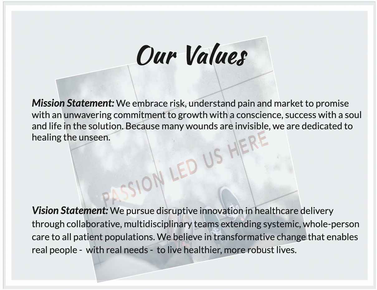 Interdisciplinary & Collaborative: The positive interaction of 2 or more healthcare professionals who bring their unique skills & knowledge to assist patients and families with health care decisions.